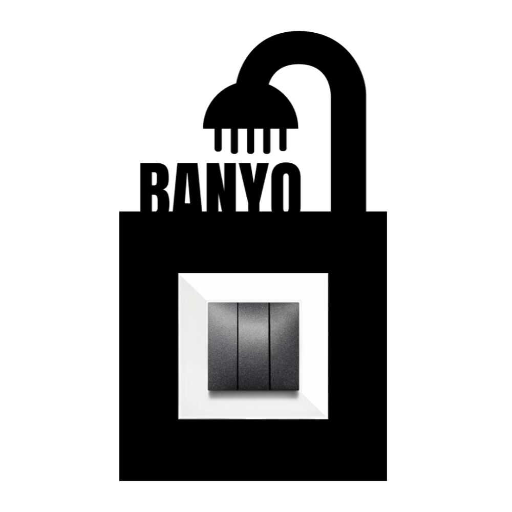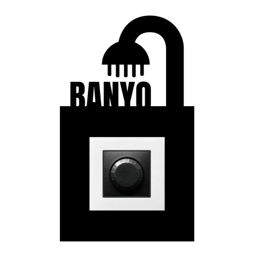🚿 Tematik Tasarım: Duş başlığı ve "BANYO" yazısı, özellikle banyo girişlerinde veya içerideki prizlerde uygun bir tema yaratır.