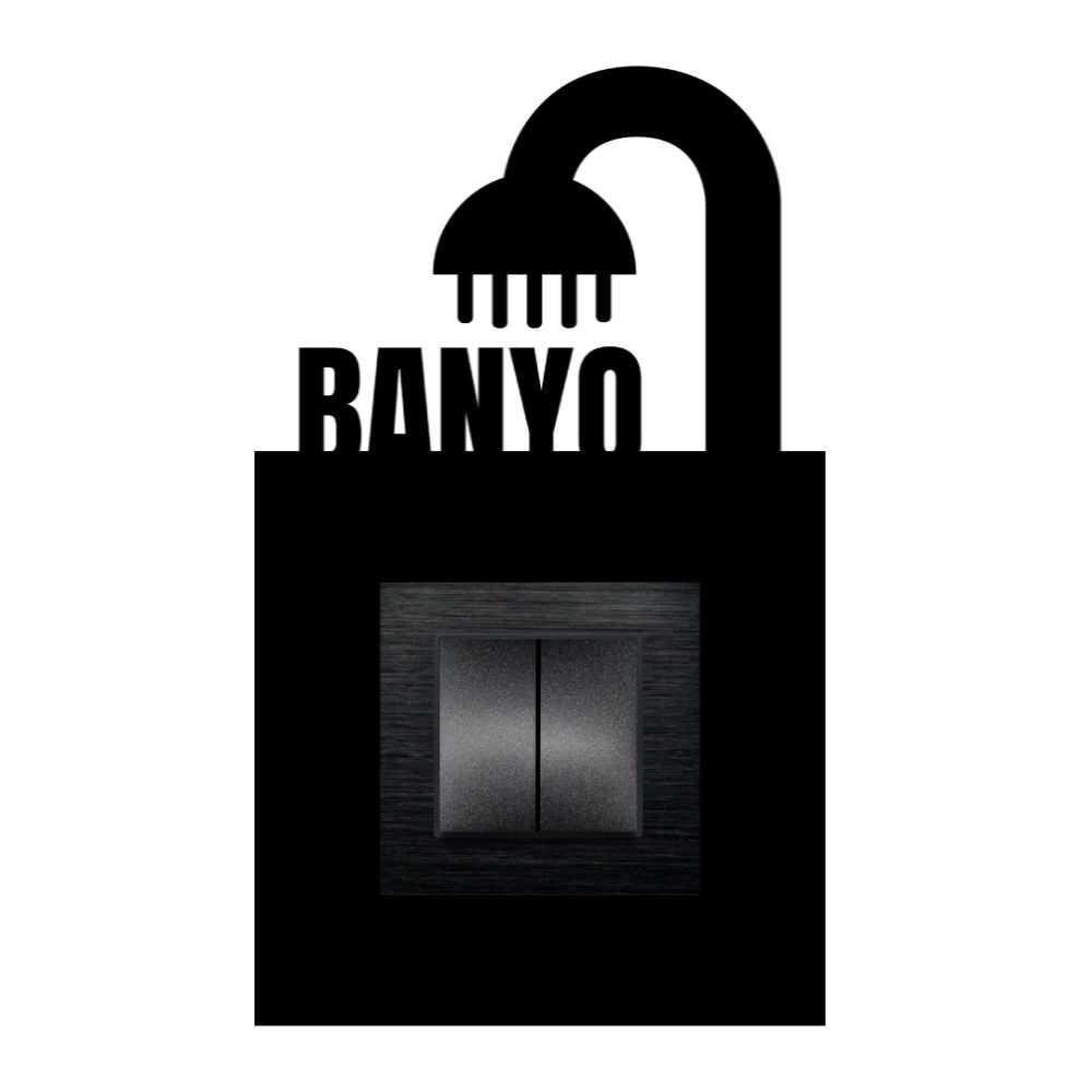 Desen: Duş Başlığı ve "BANYO" Yazısı (Siyah Silüet)