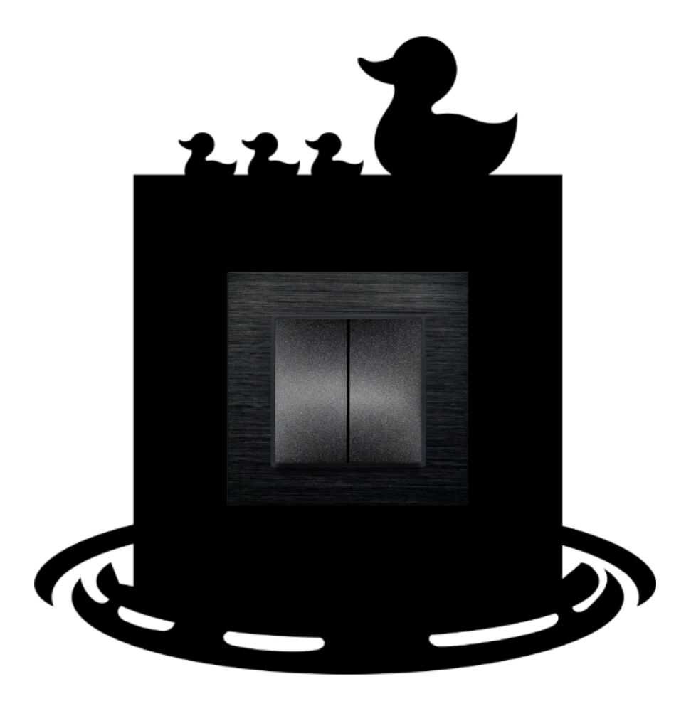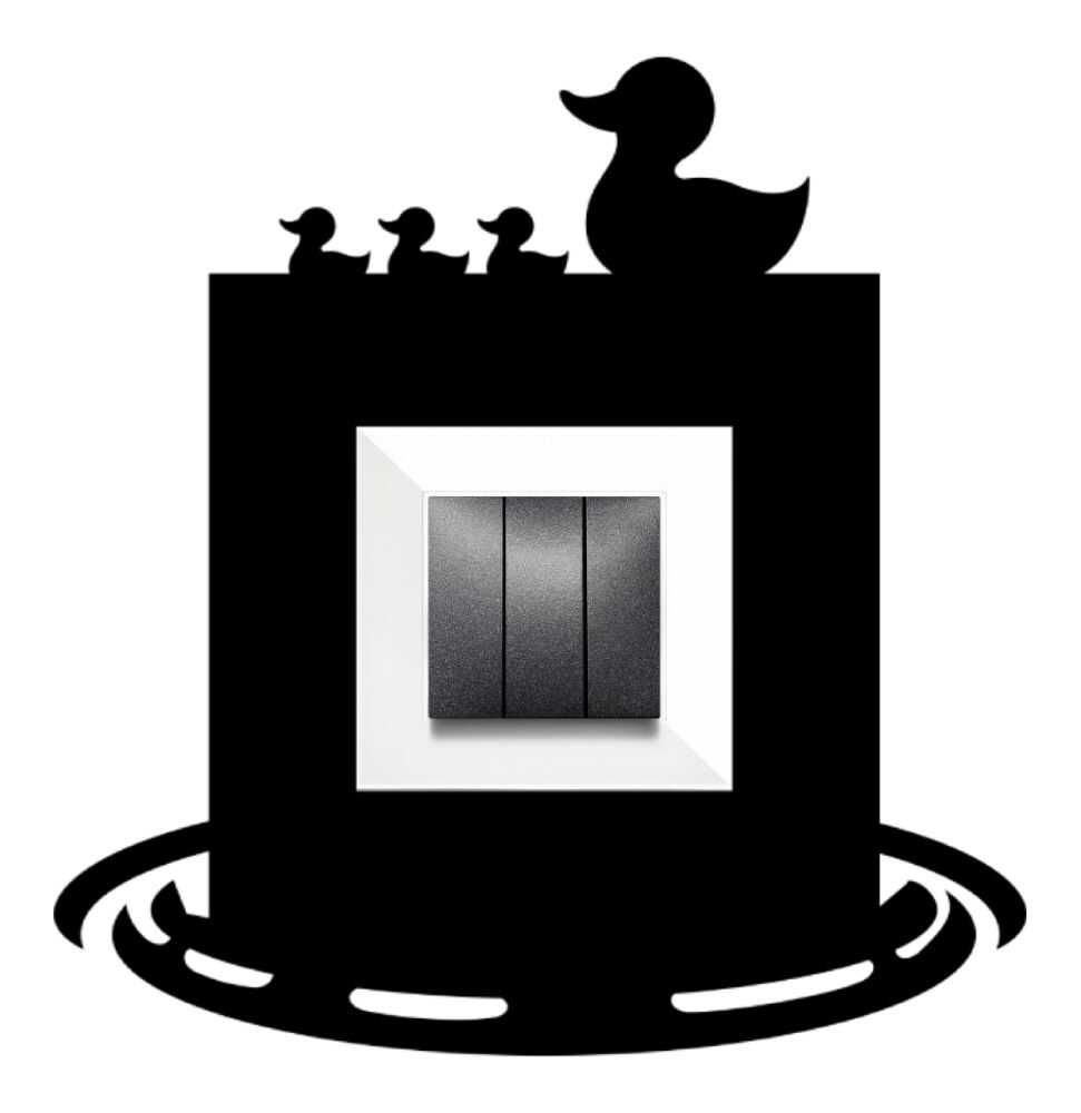 Standart elektrik priz ve anahtarlarınızı, gülümseten bir dekorasyon parçasına dönüştürün! Bu sevimli ördek ailesi desenli çerçeve ile özellikle çocuk odalarına, kreşlere ve banyolara neşeli bir hava katın. Arvehu Elektrik'in AsFir Serisi çerçeveleri için özel olarak tasarlanmıştır.