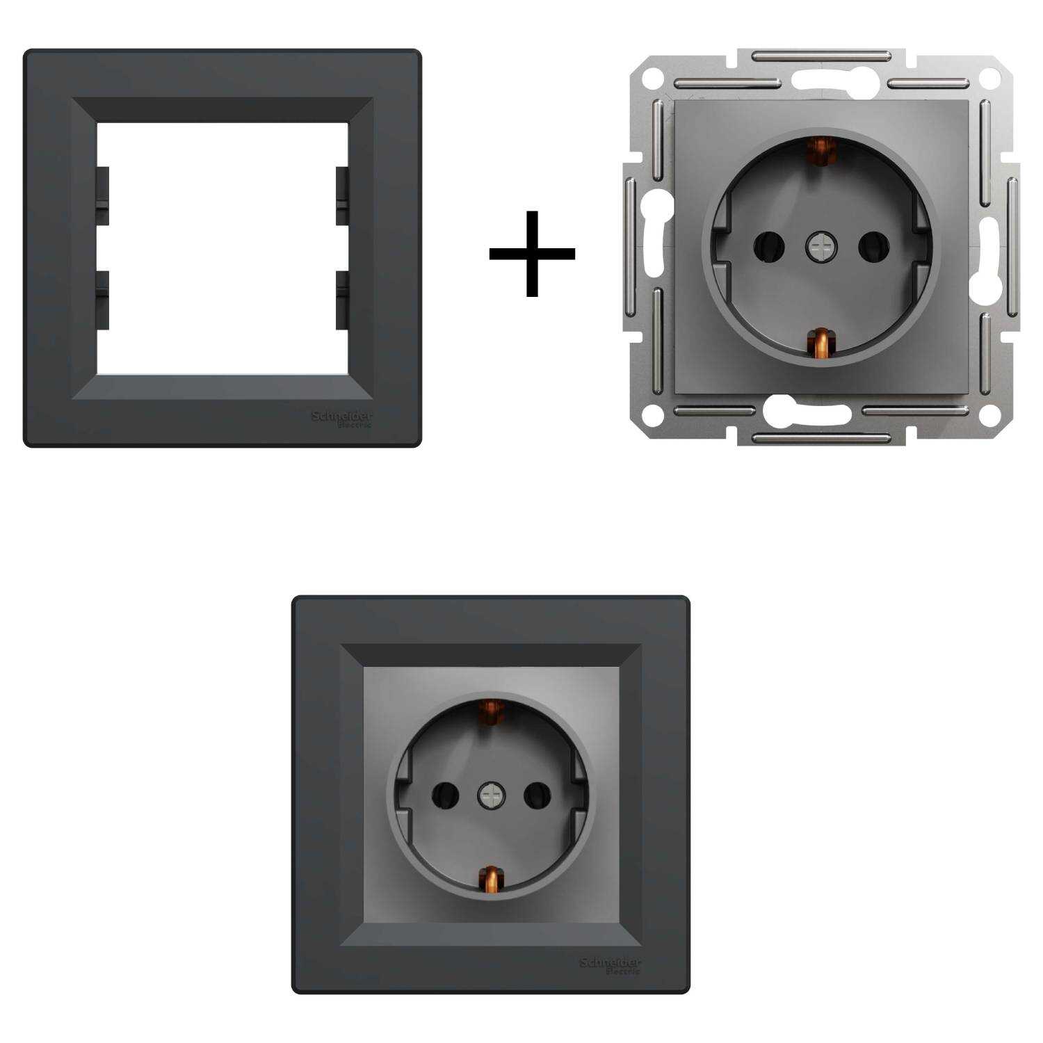 EPH2900171-1 Schneider Asfora – Topraklı Priz, 16A – Antrasit - Çerçeveli